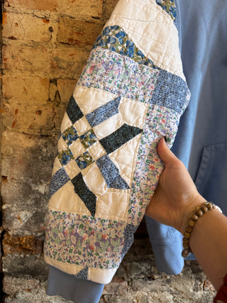 Upcycled Levi Jean Shorts w/ Quilted Patches - Size 12/14 32 waist