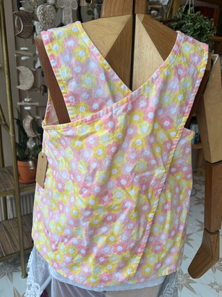 Upcycled Sheet Side Tie Top Yellow Flowers (Two sizes)